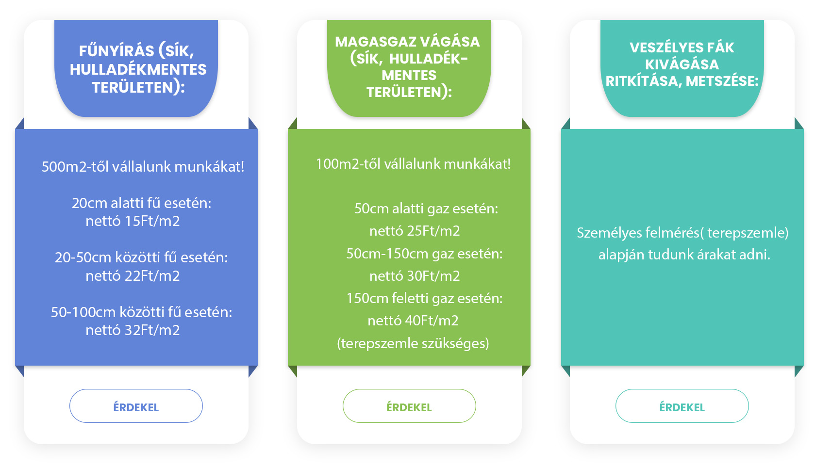 Csak hulladék és építési törmelék mentes területen tudunk gépeinkkel munkát végezni! Szárzúzó gépeink a levágott zöldhulladékot ledarálják, így nincs szükség az elszállításra. Egyéb esetben az árak nem tartalmazzák